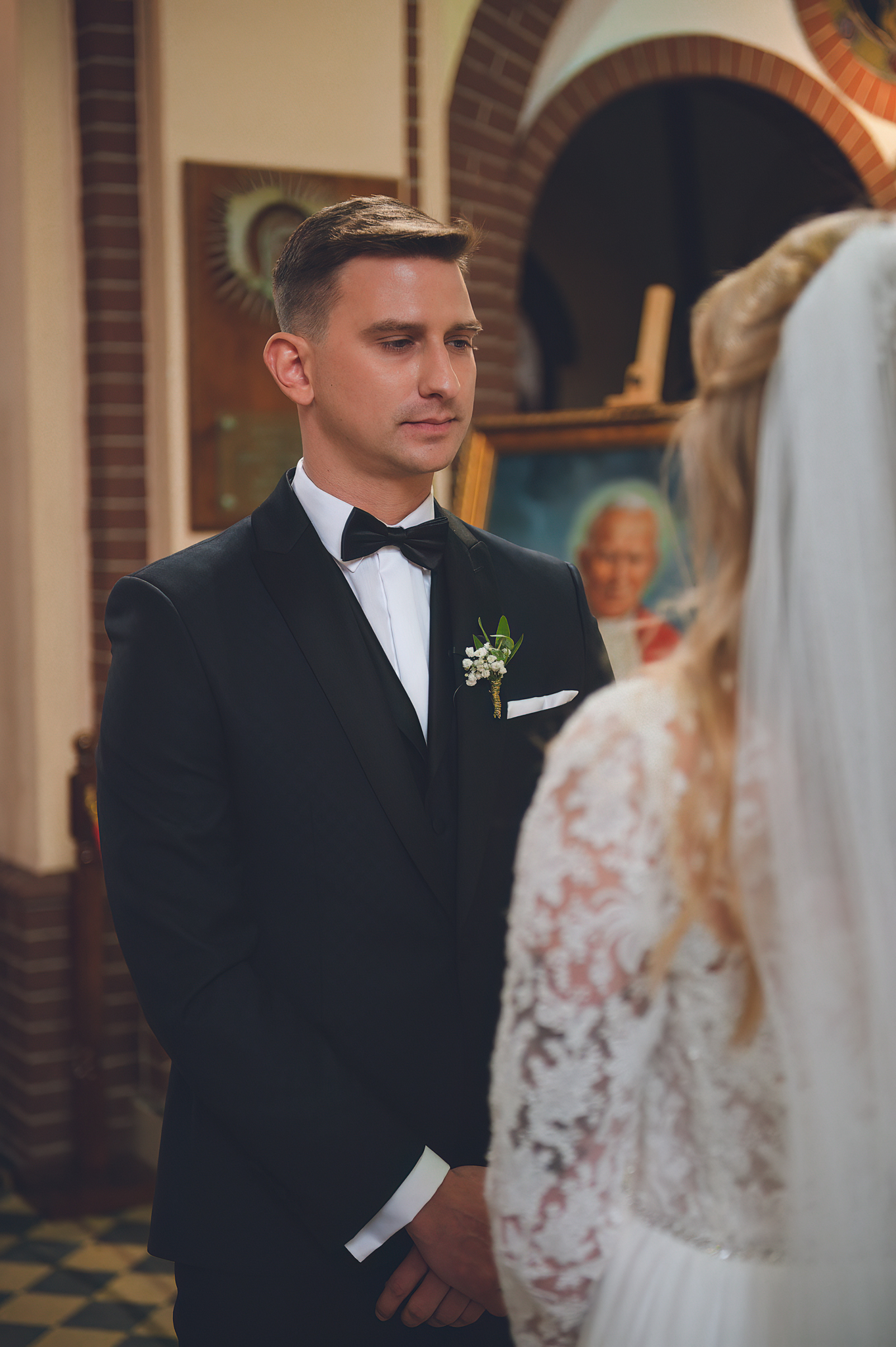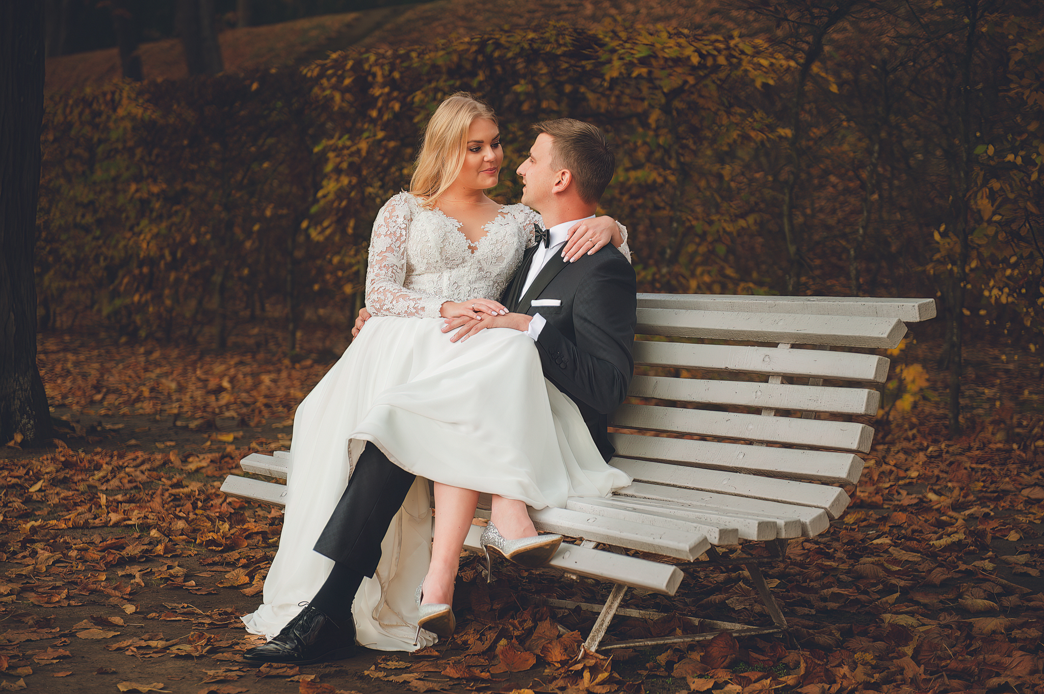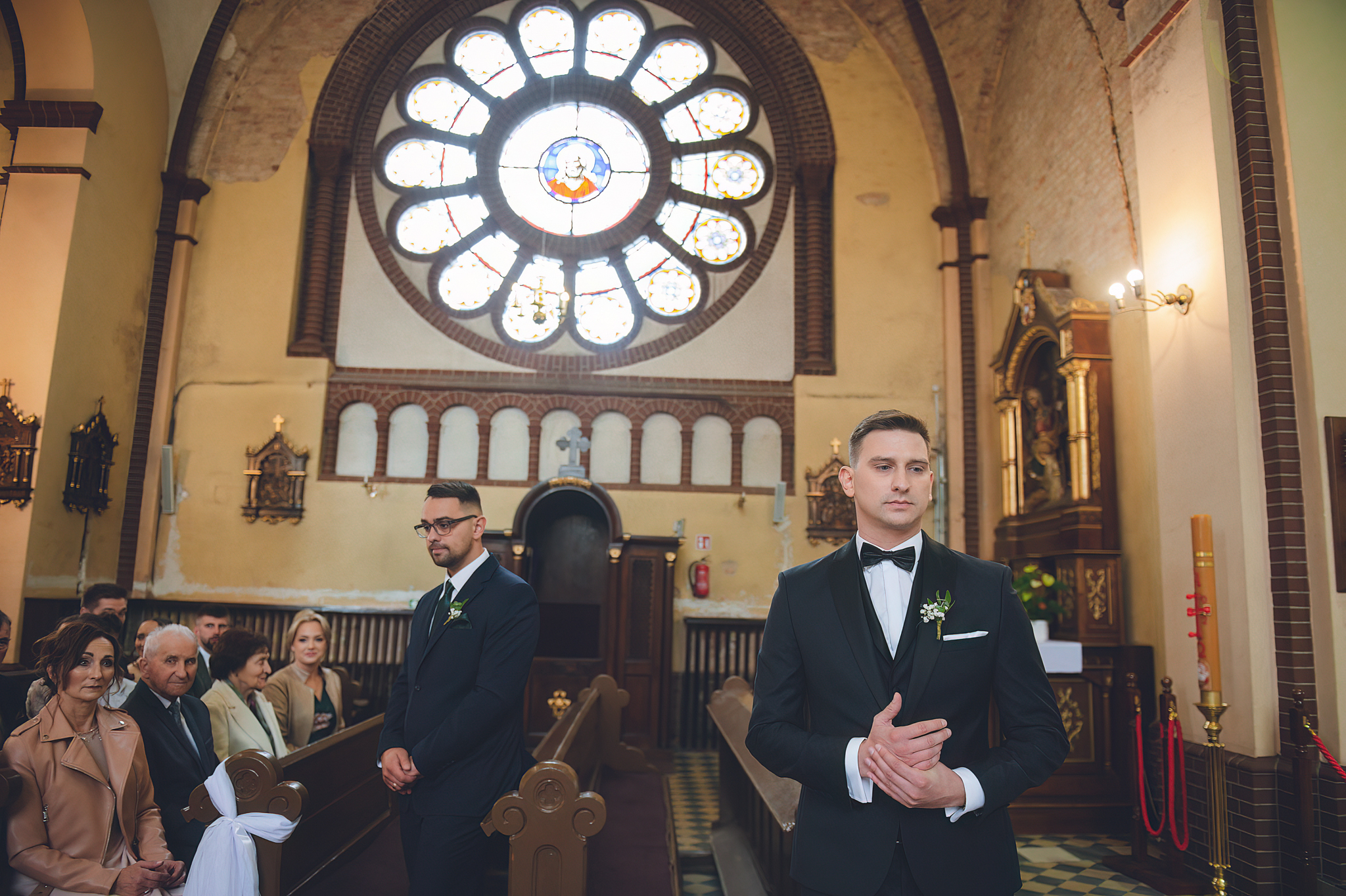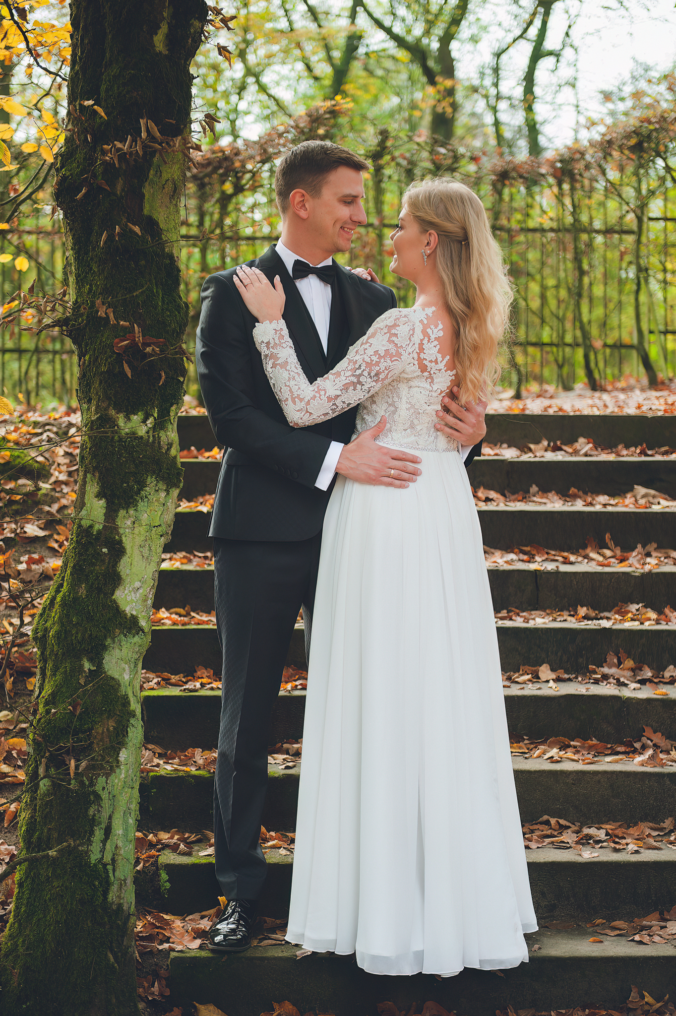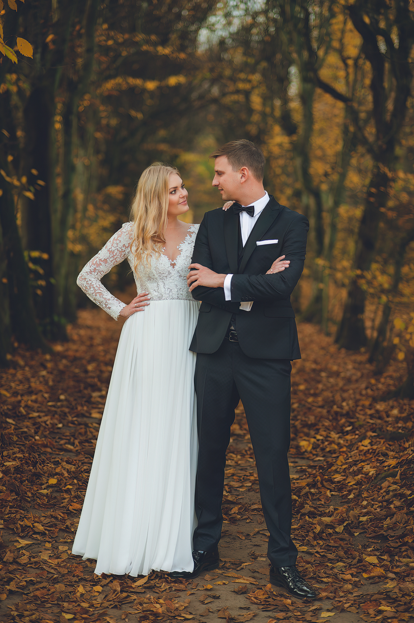 NAPISZ DO NAS →Jesień to najtrudniejsza i najpiękniejsza pora dla fotografa. U Agaty i Michała światło było gęste, złote i nisko zawieszone. Wykorzystaliśmy to, by zbudować klimat "Szlachetnej Ciszy". Ceglane mury kościoła i rudości w parku stworzyły naturalne, ciepłe tło, które idealnie kontrastowało z czernią garnituru i bielą sukni.