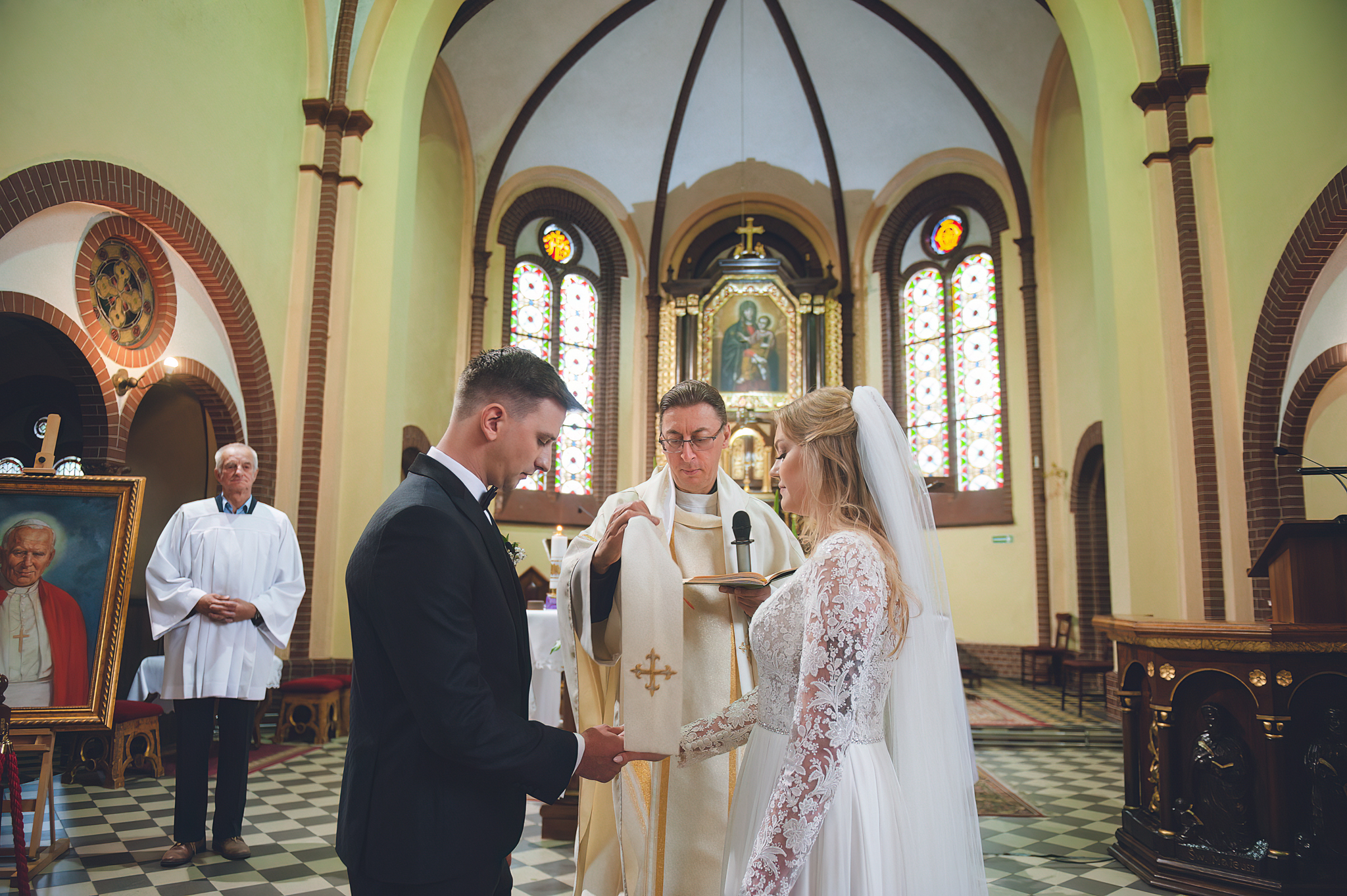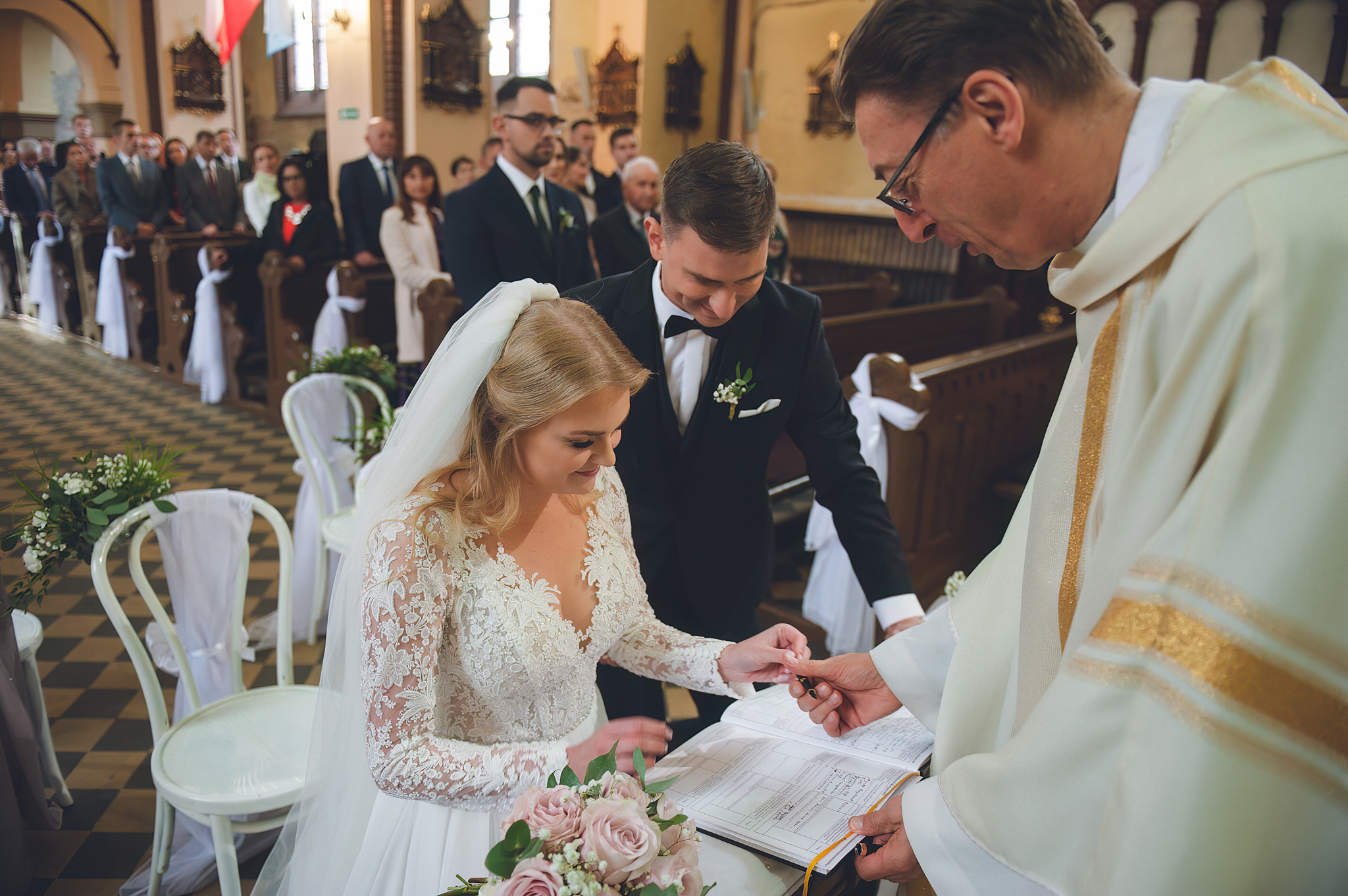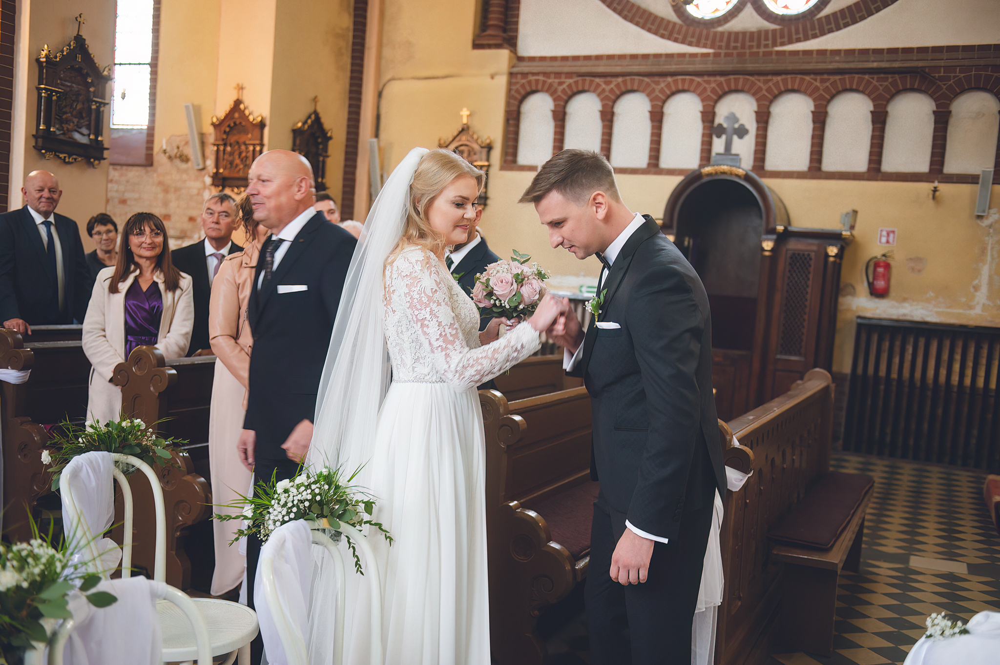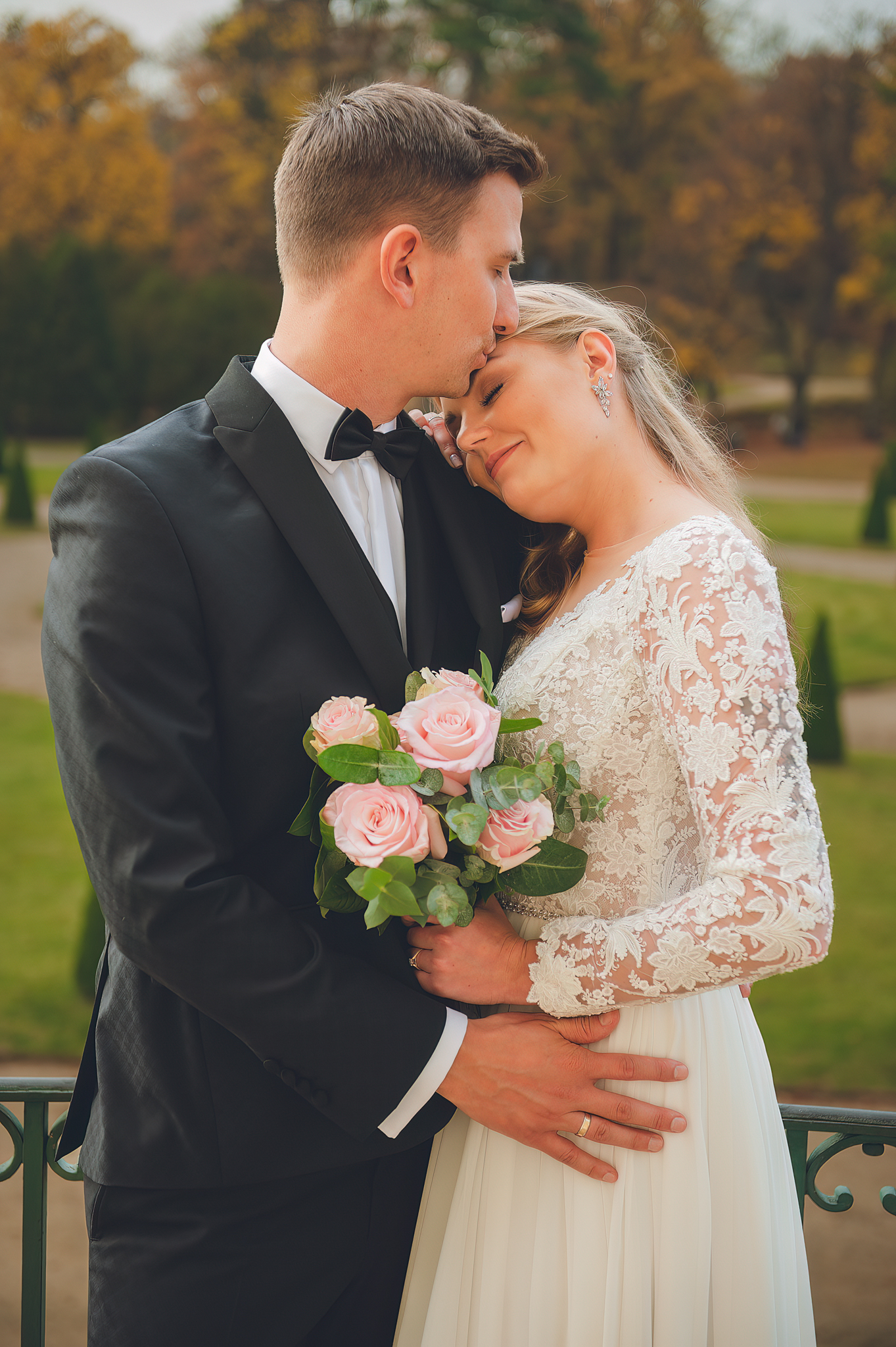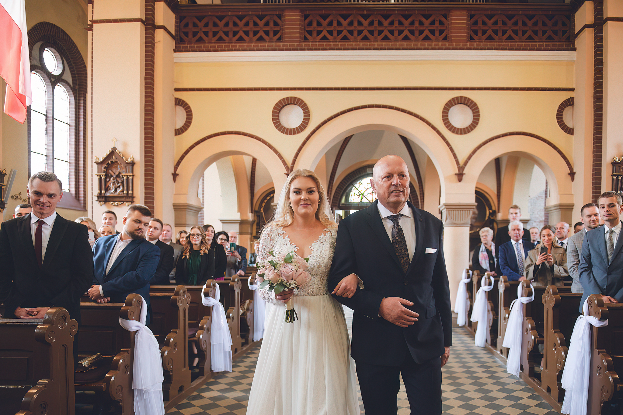 NAPISZ DO NAS →Jesień to najtrudniejsza i najpiękniejsza pora dla fotografa. U Agaty i Michała światło było gęste, złote i nisko zawieszone. Wykorzystaliśmy to, by zbudować klimat "Szlachetnej Ciszy". Ceglane mury kościoła i rudości w parku stworzyły naturalne, ciepłe tło, które idealnie kontrastowało z czernią garnituru i bielą sukni.