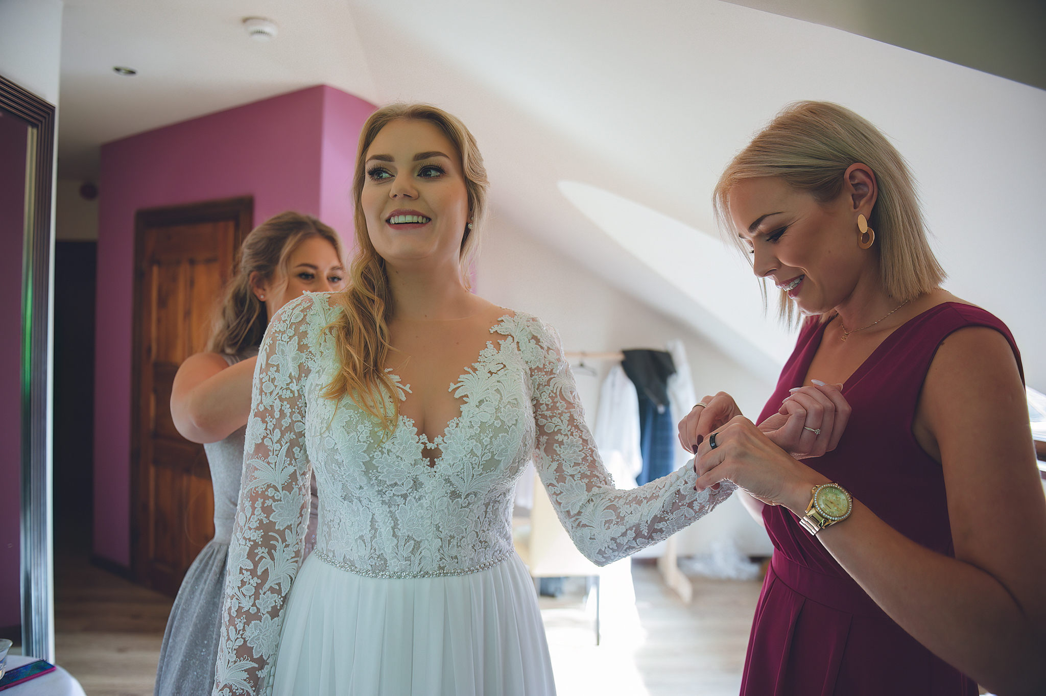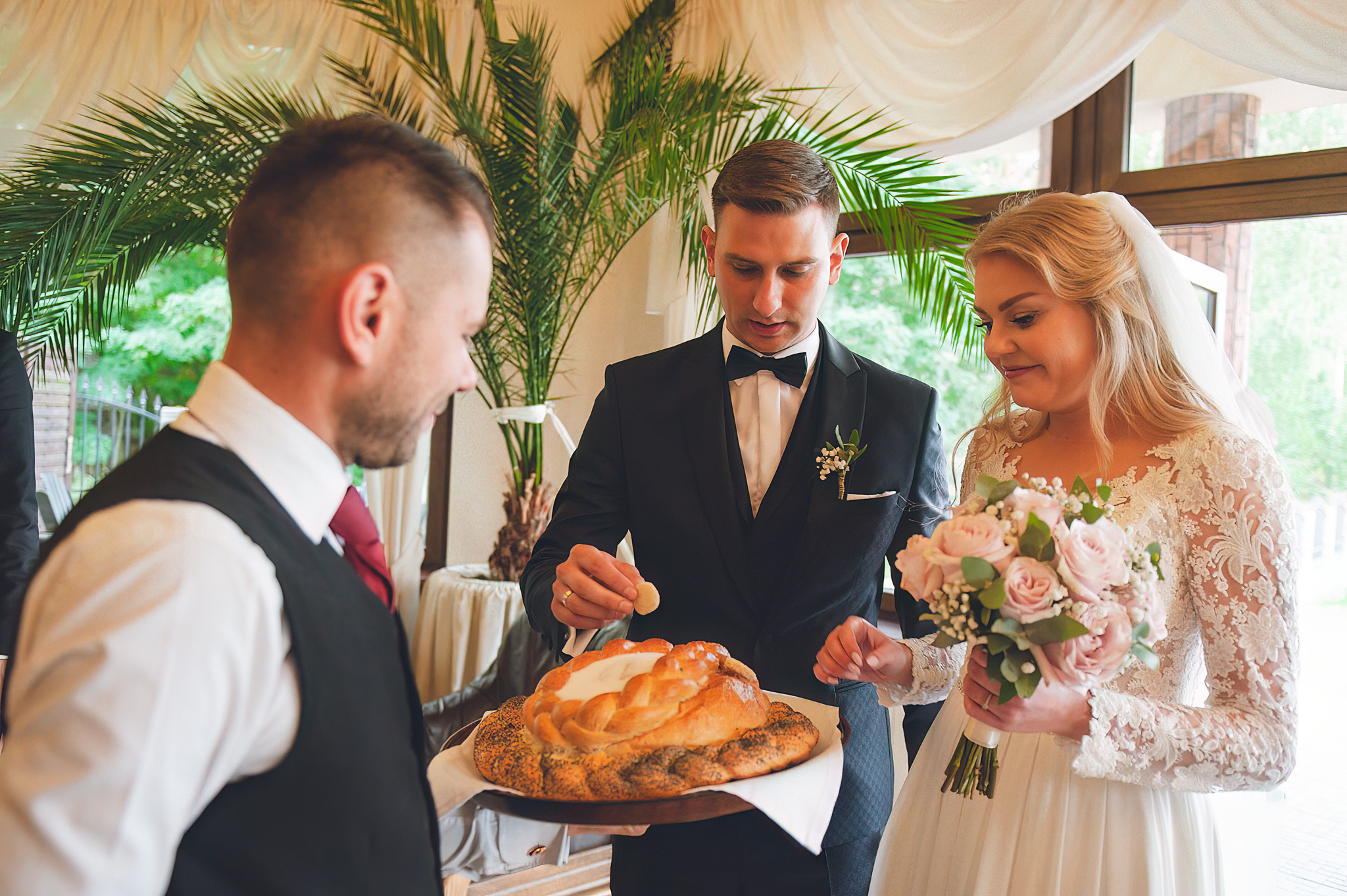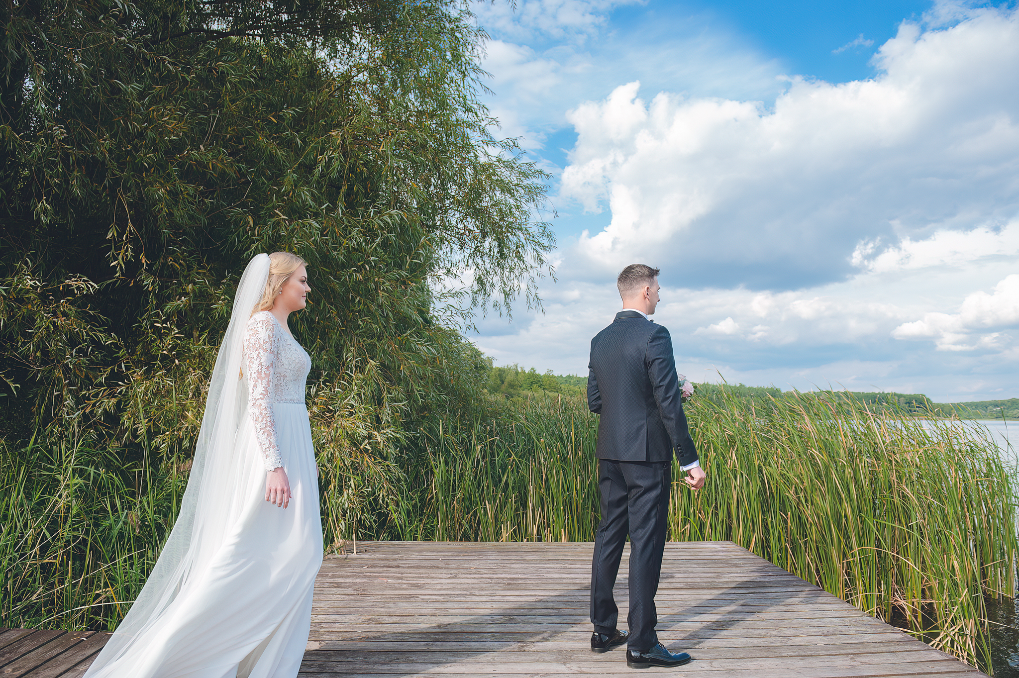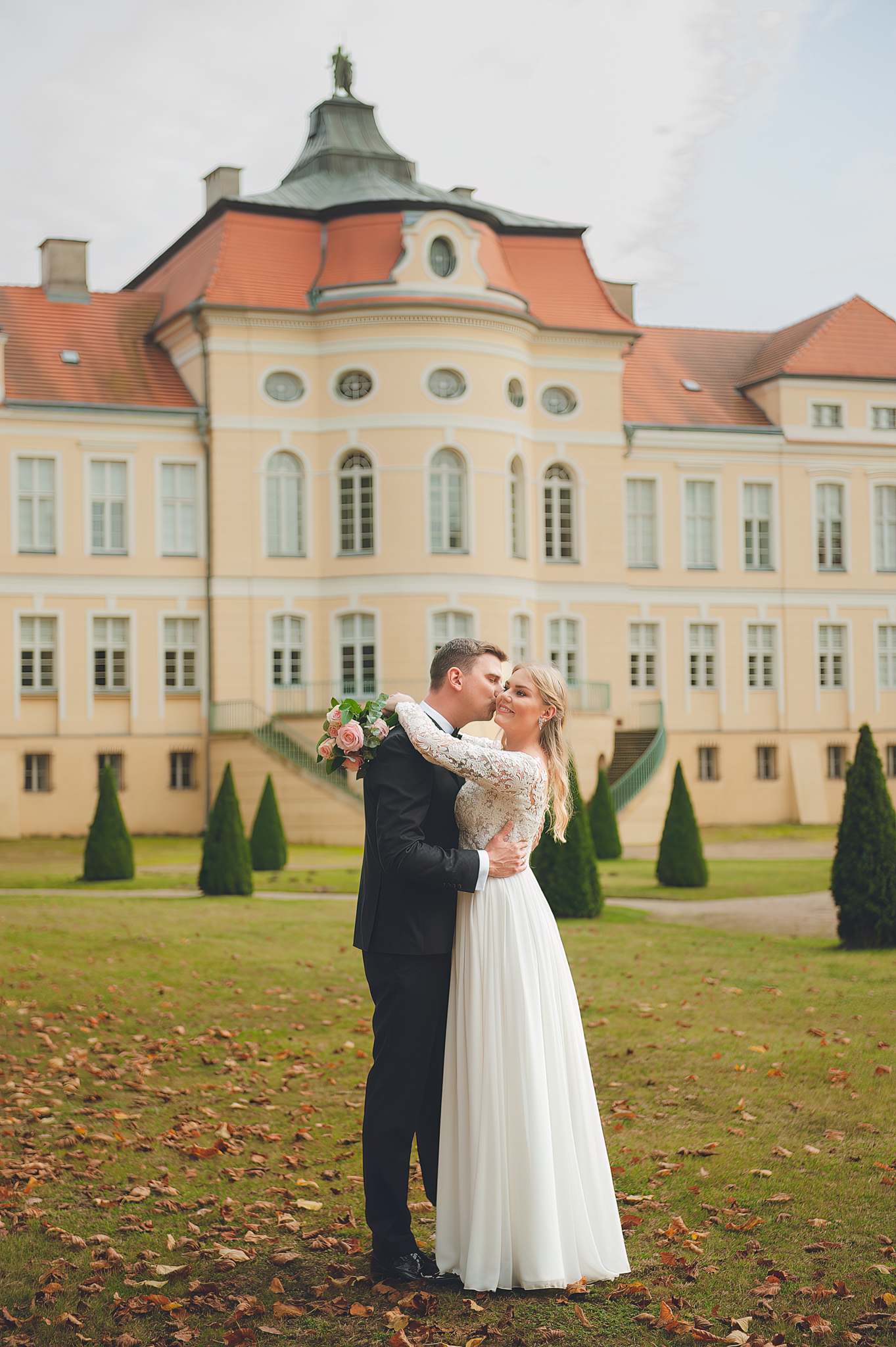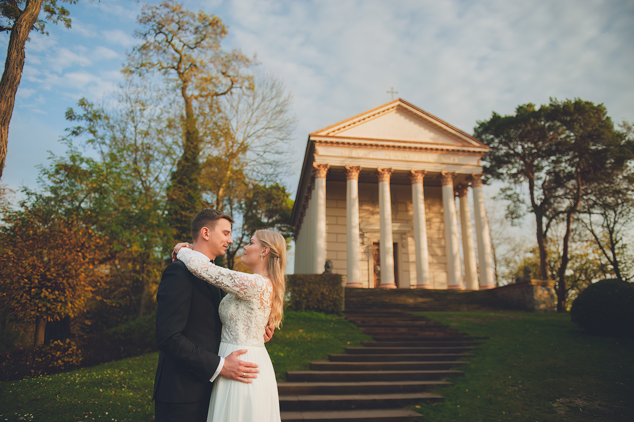 W tym reportażu kluczowa była architektura. Wykorzystaliśmy potężne, drewniane drzwi i pałacowe schody, by nadać zdjęciom majestatu. Agata i Michał wyglądają na nich nie jak para młoda, ale jak para królewska.