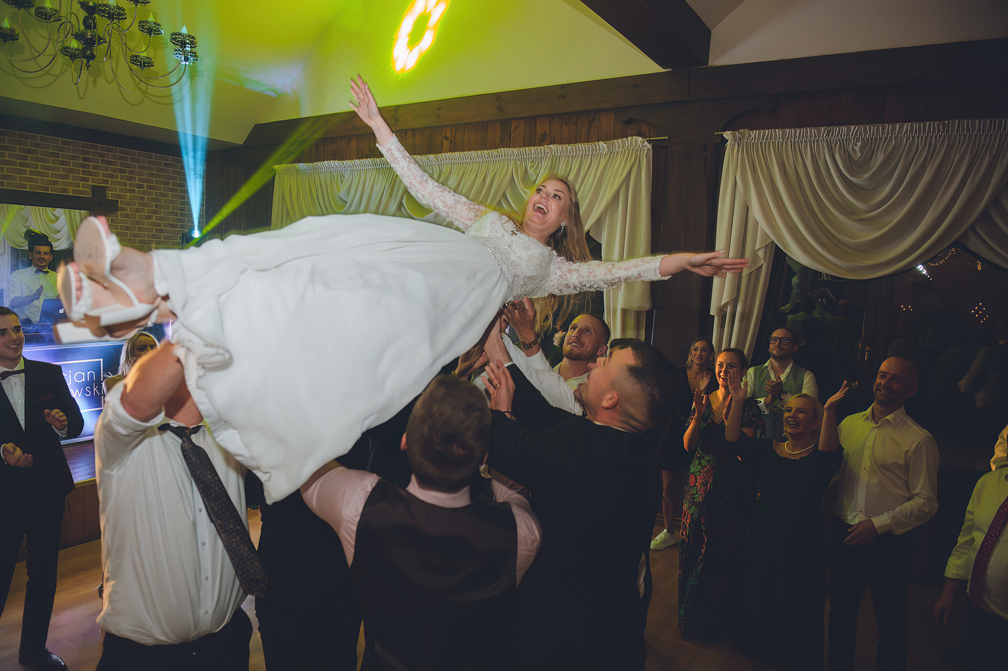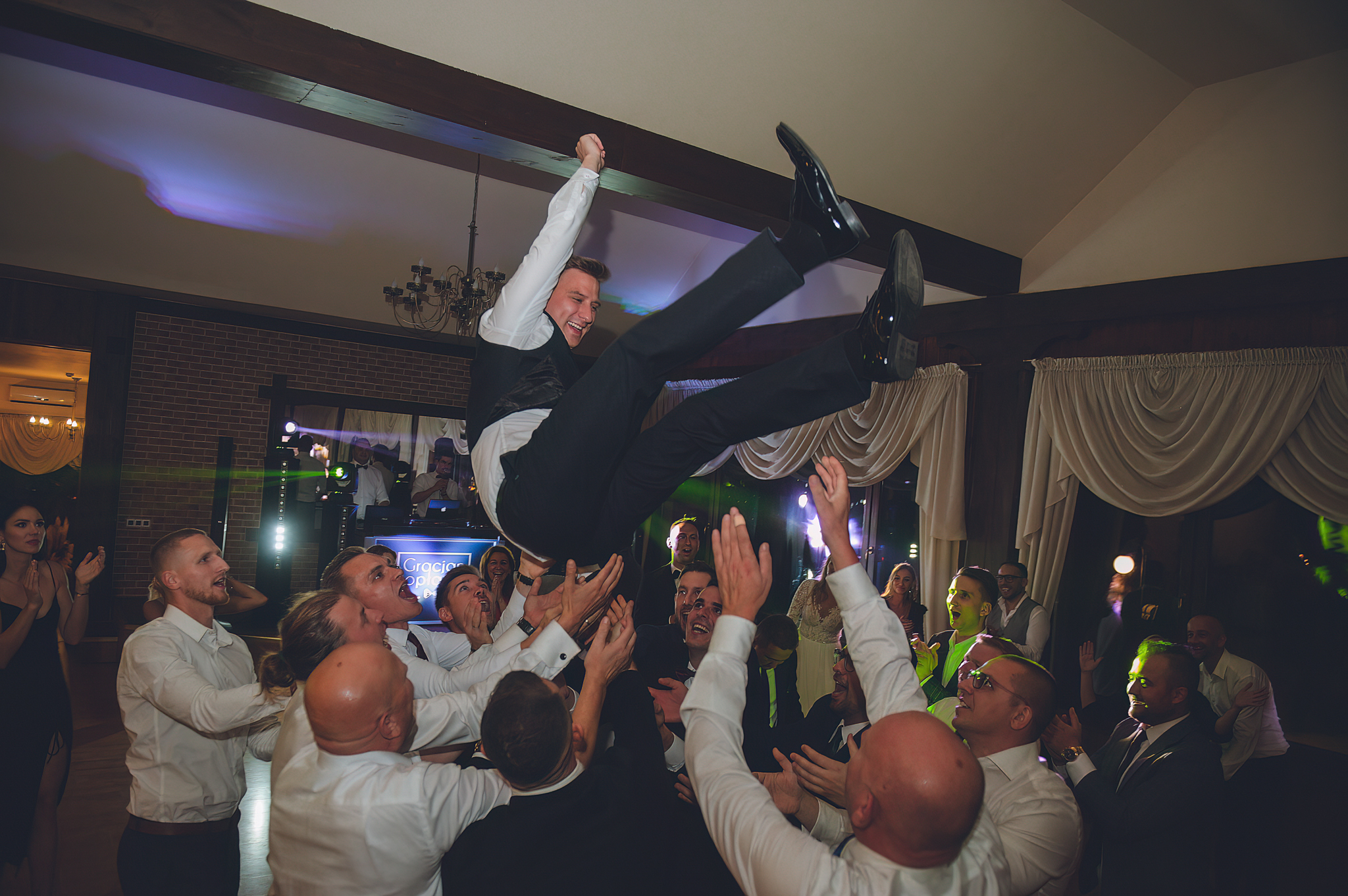 A wesele? Zamroziliśmy w kadrze "Latającego Michała". Zdjęcie, na którym Pan Młody unosi się nad głowami gości, to dowód na to, że fotografia potrafi przeczyć grawitacji. To energia zatrzymana w ułamku sekundy.