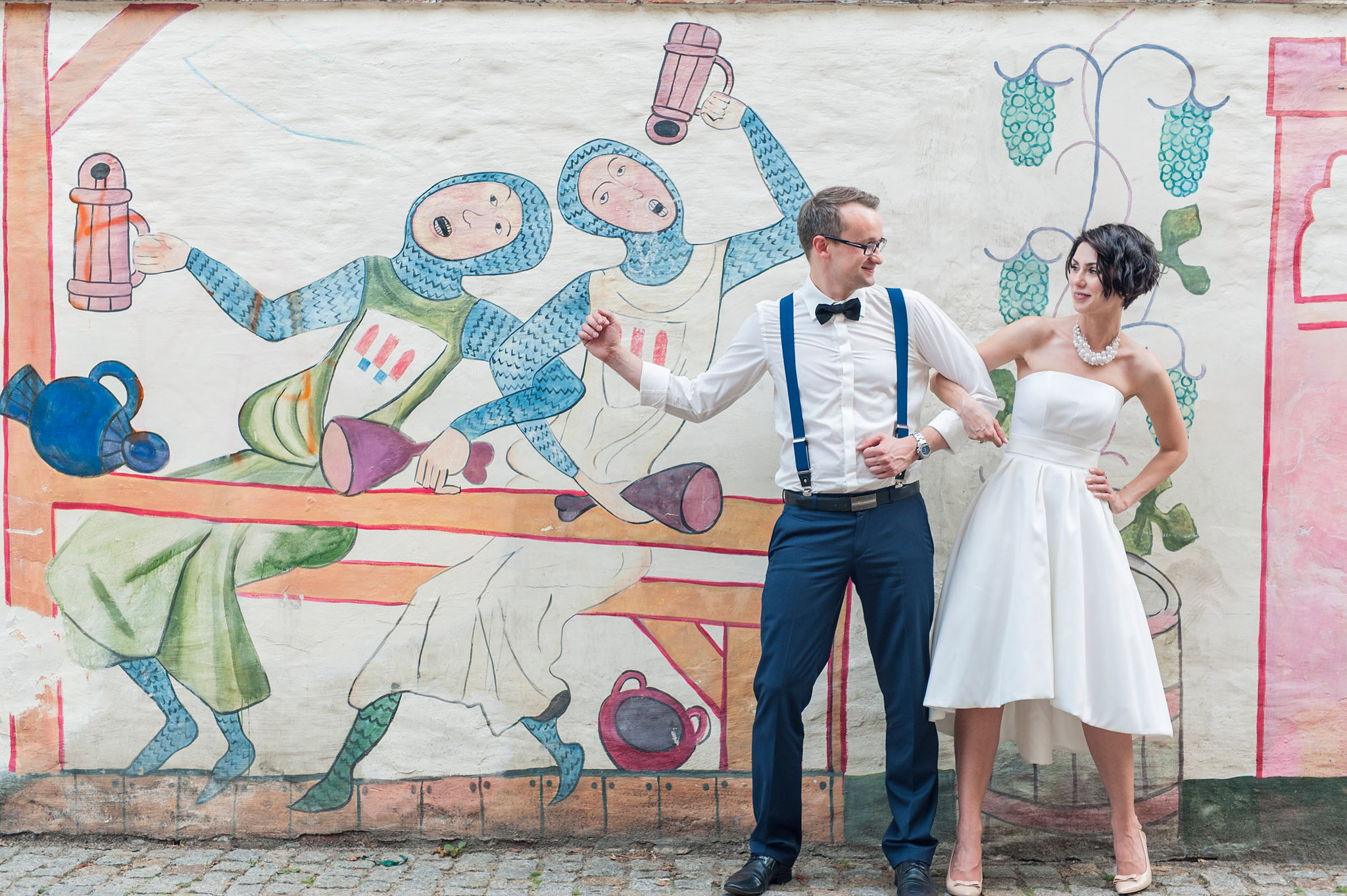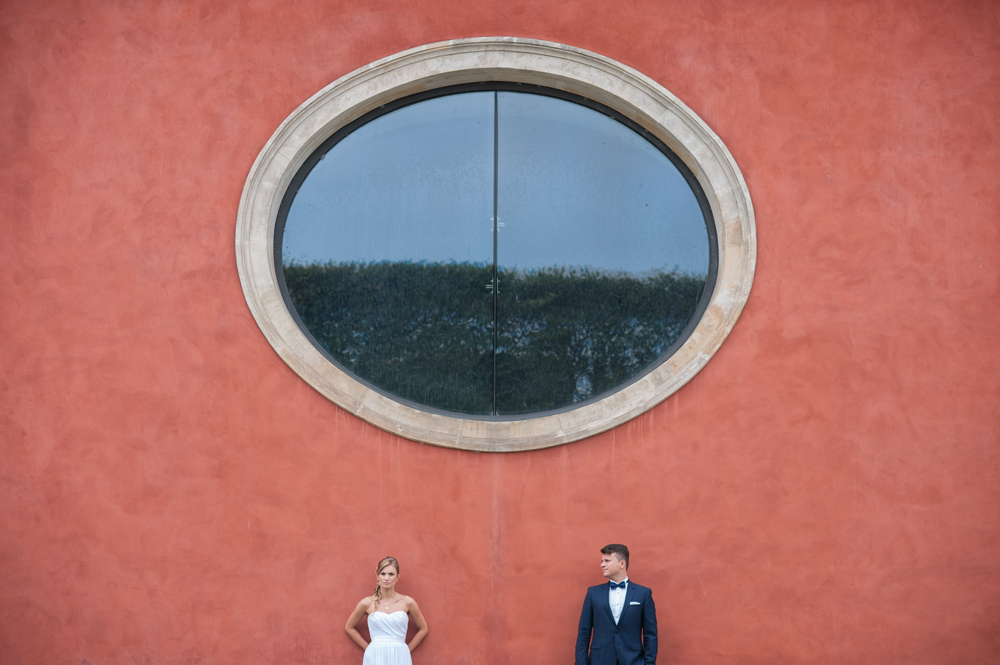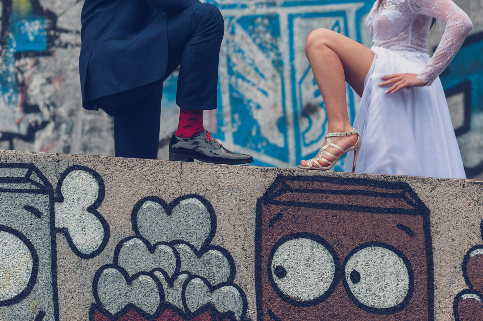 Tutaj pracujemy kontrastem. Miękkość sukni ślubnej zestawiamy z twardością betonu. Intymność dwojga ludzi pokazujemy na tle miejskiego pędu. Szukamy rytmu w kolumnach, odbić w witrynach i światła wpadającego w wąskie uliczki.