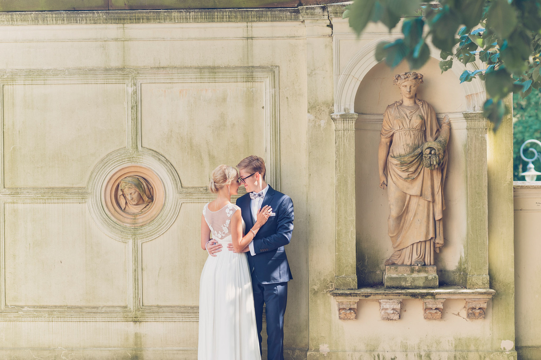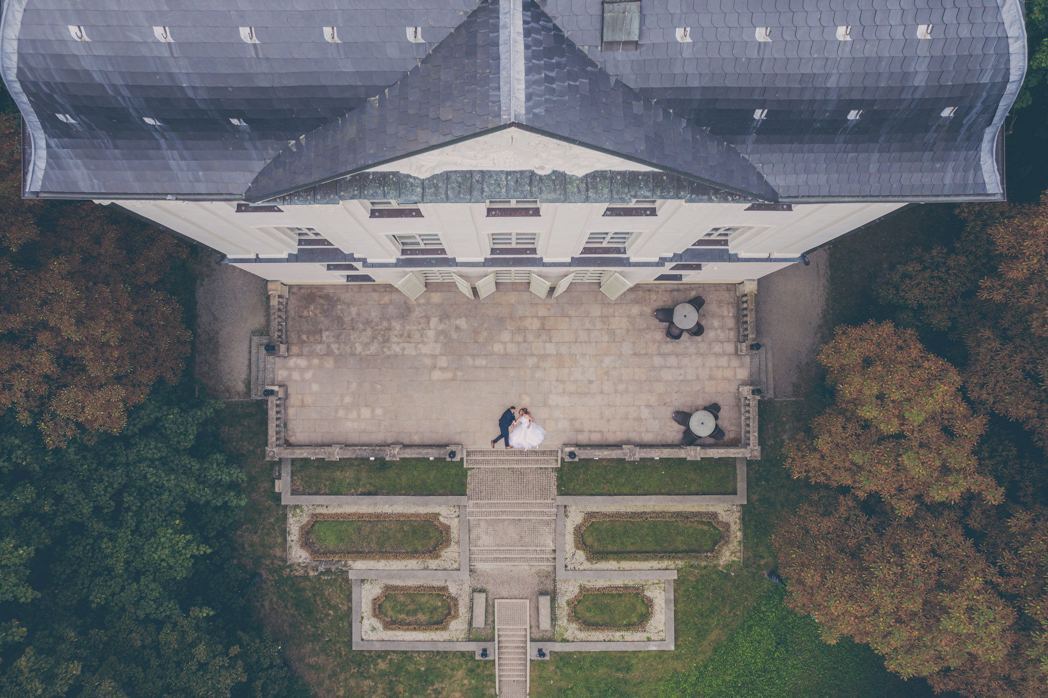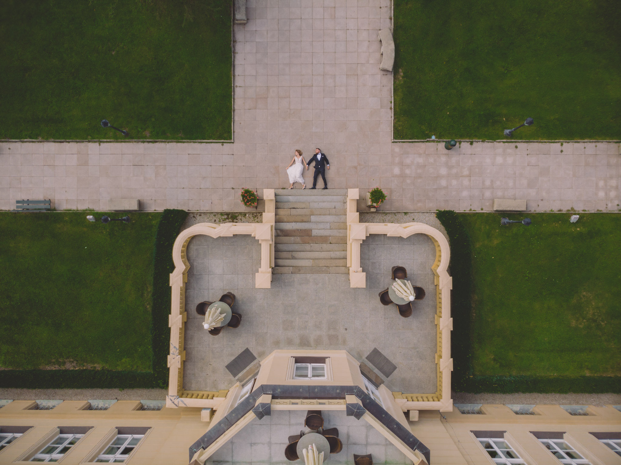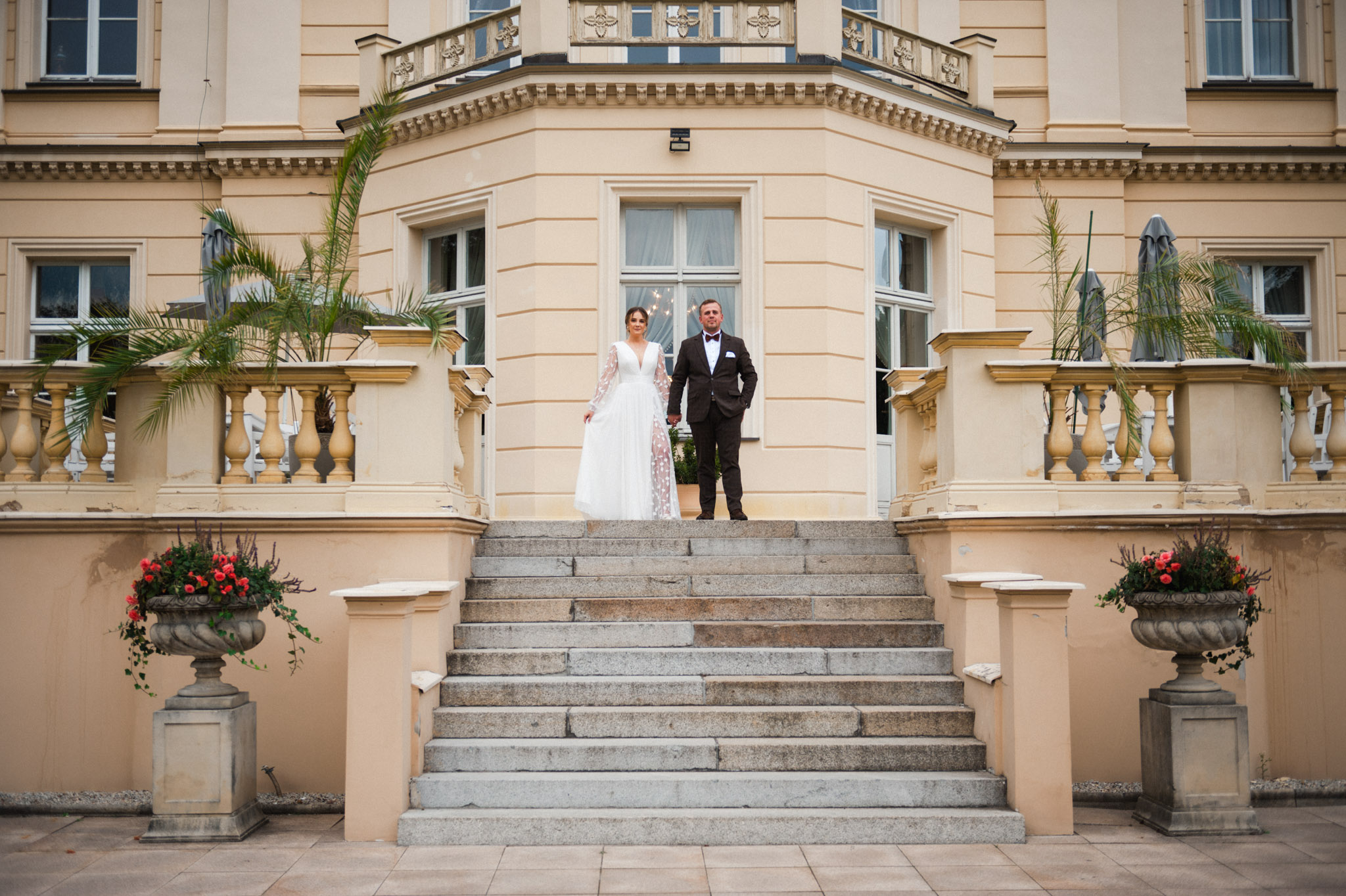 Z drugiej strony – ukryty w zieleni Pałac Stary. Bardziej surowy, intymny, z zapachem starego drewna. Całość spina gigantyczny park krajobrazowy, który o zachodzie słońca zamienia się w naturalne studio fotograficzne. To przestrzeń dla par, które szukają klasyki, ale nie chcą rezygnować z oddechu natury.