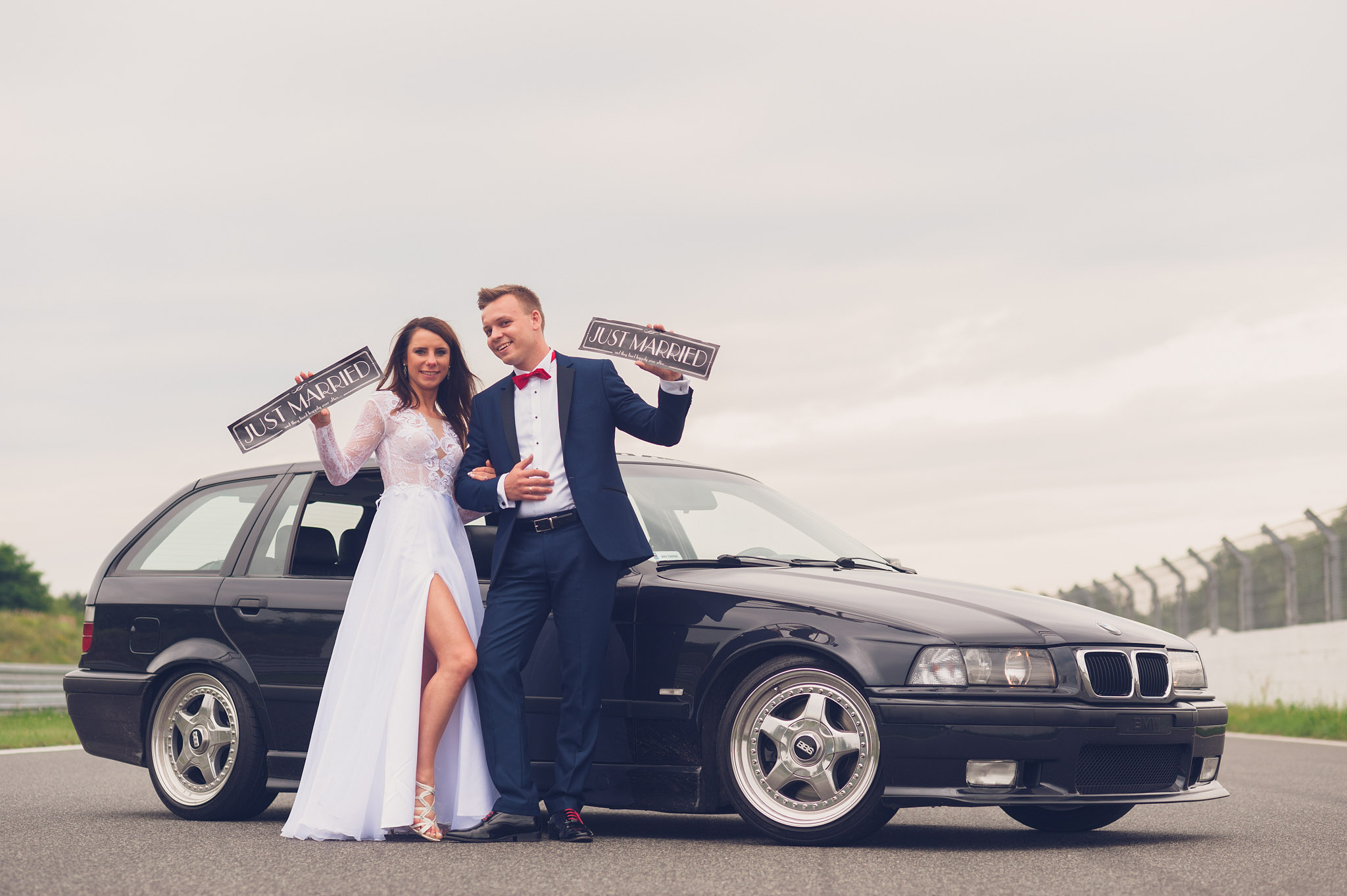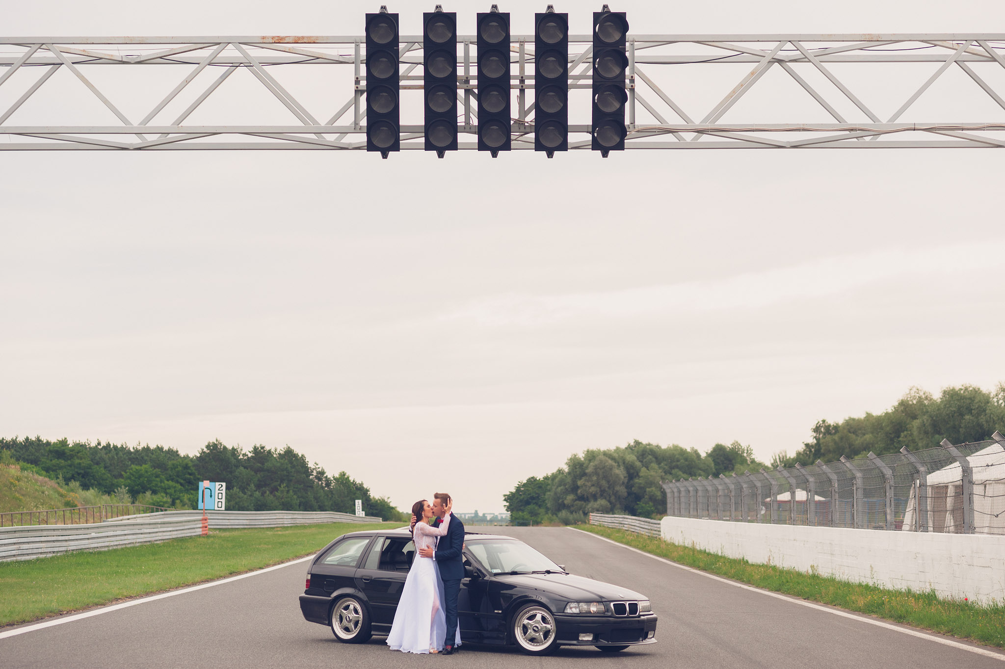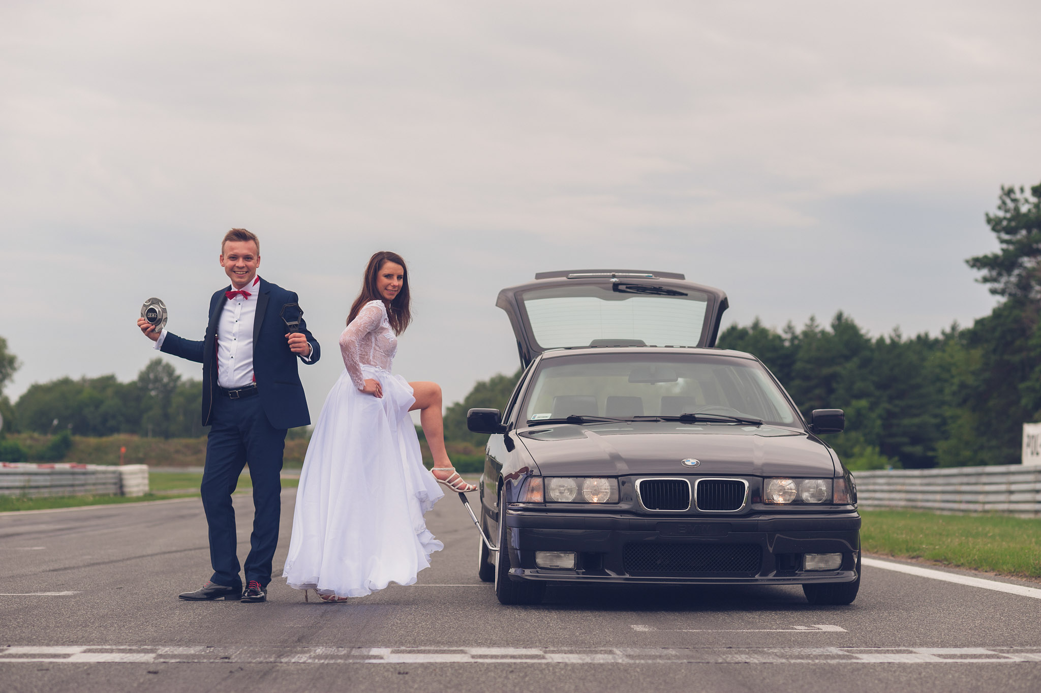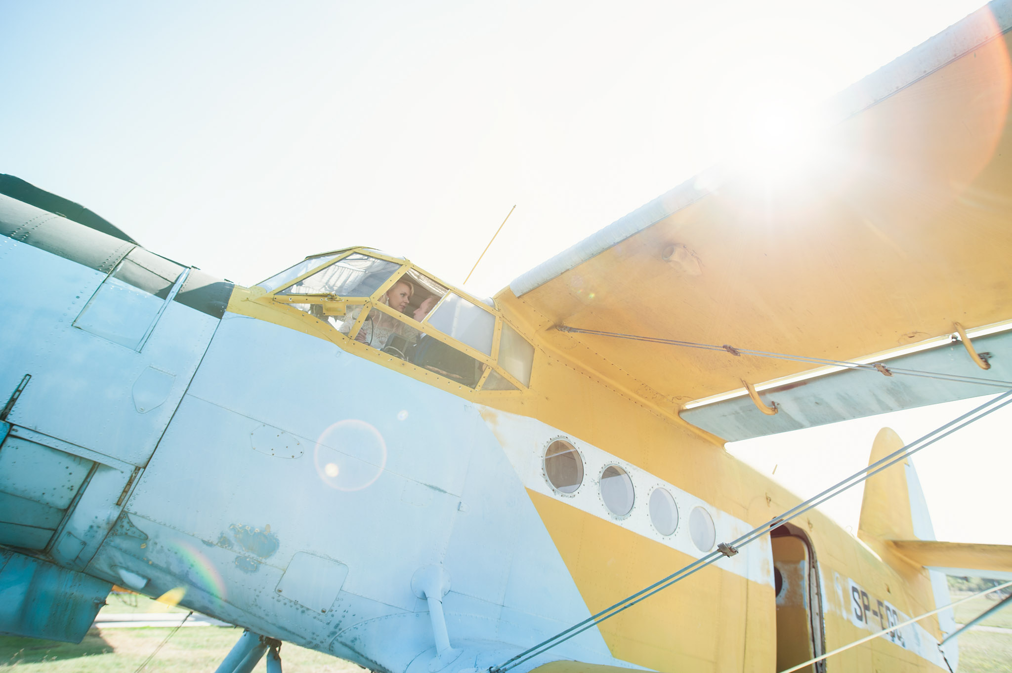 Sesja z motocyklem, na torze wyścigowym czy przy samolocie to czyste kino. Tutaj estetyka ślubna miesza się z fotografią modową i reportażem sportowym. Nie ma tu miejsca na sztuczne pozy. Jest surowa maszyna, Wasza energia i geometria techniki, która staje się idealnym tłem dla elegancji.