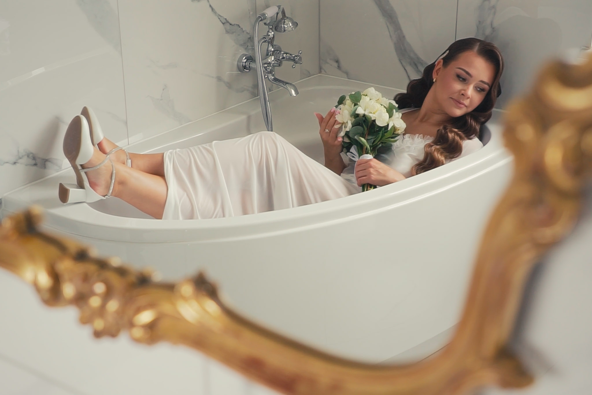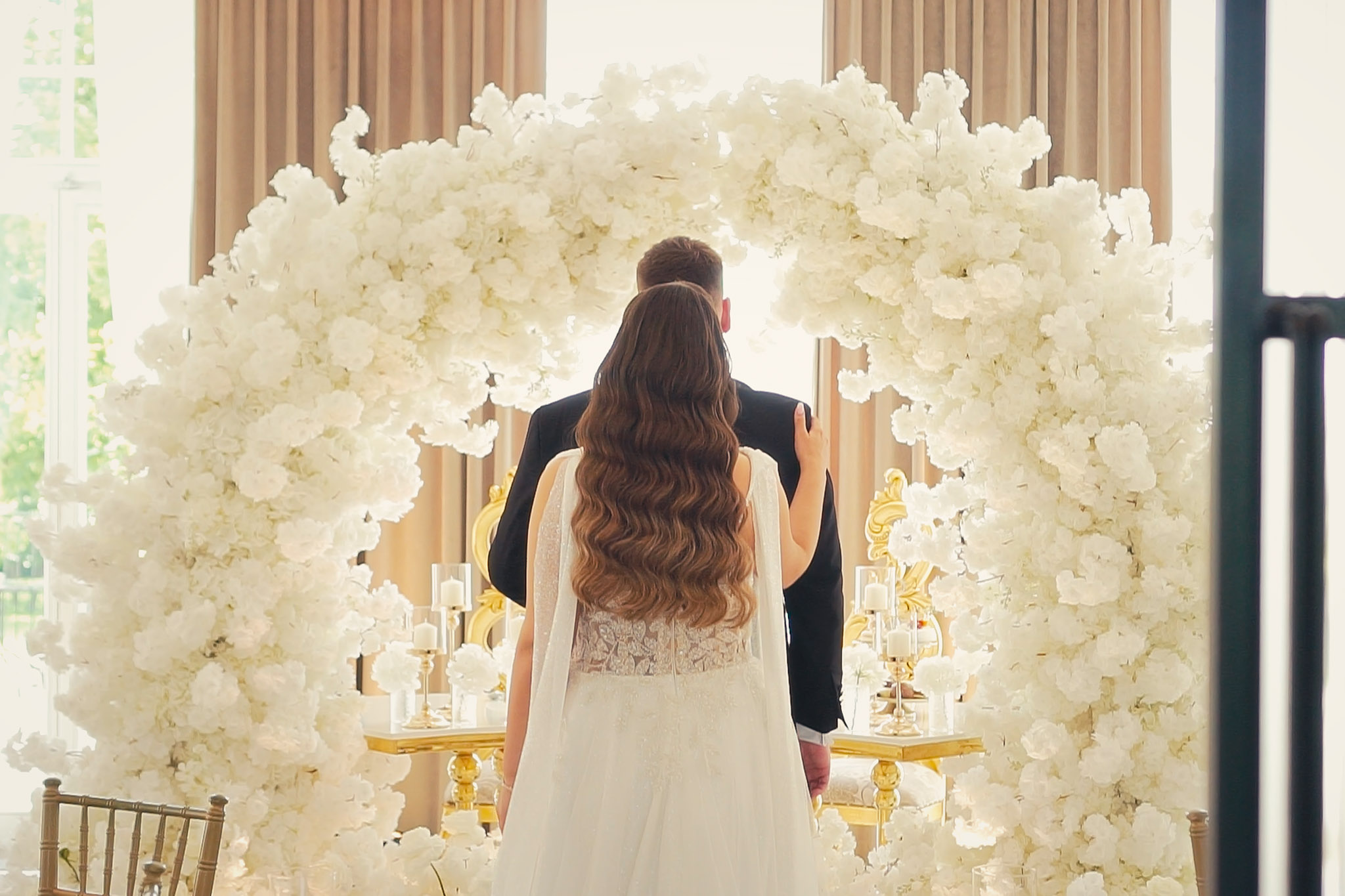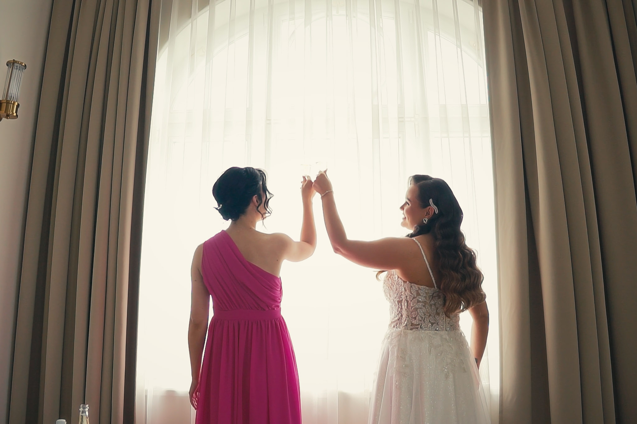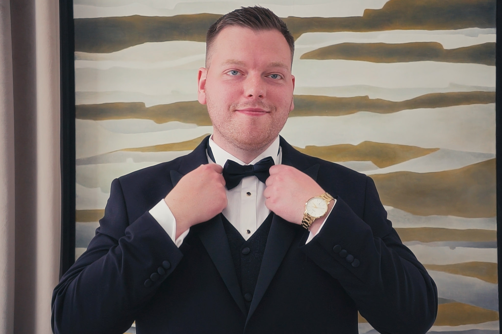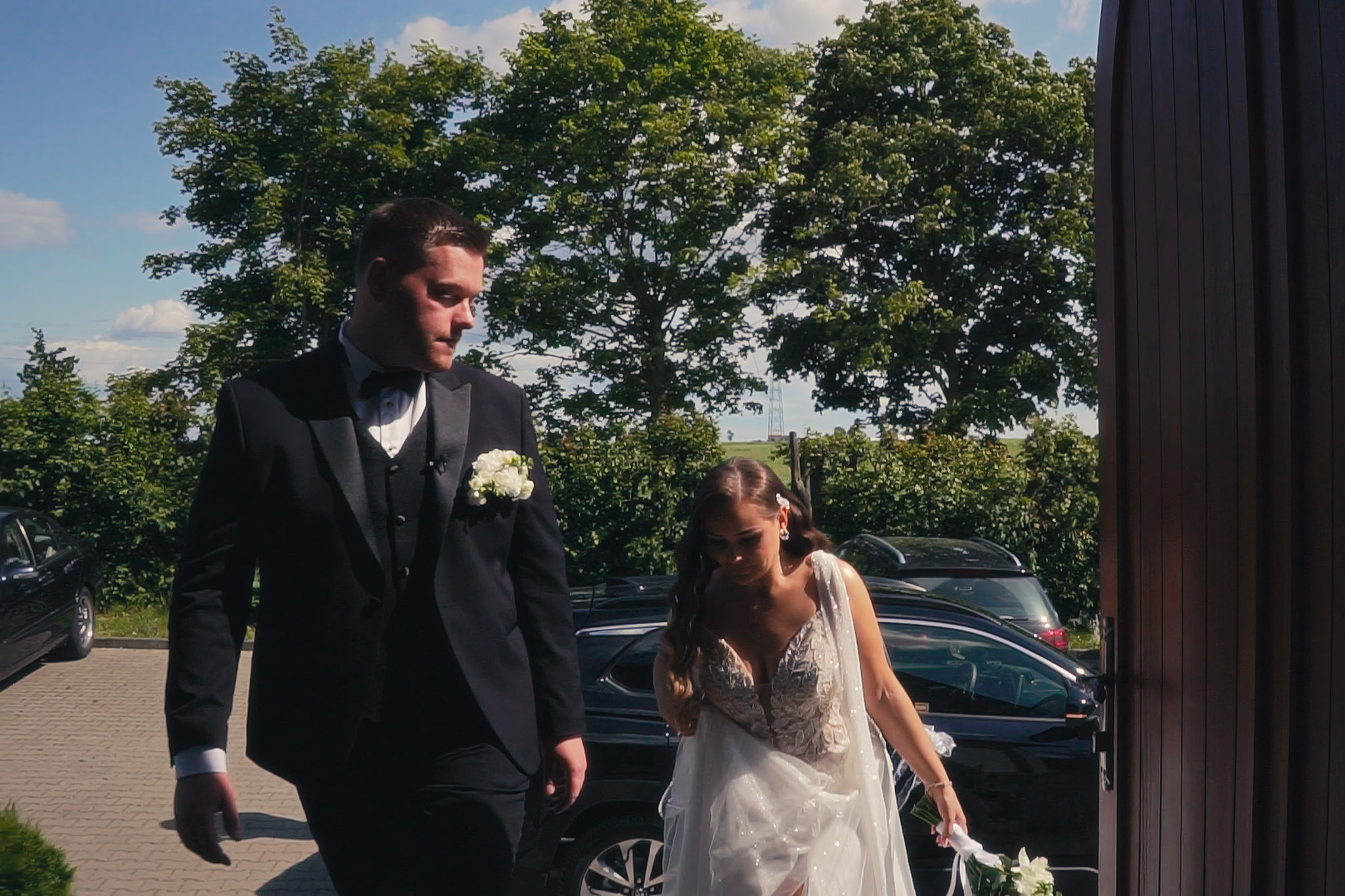 Tuż obok znajduje się mała winnica i dzikie brzegi stawu. Tam, w wysokich trawach, światło tuż przed zachodem słońca jest najbardziej miękkie i intymne. To idealne miejsce na "urwanie się" z wesela na 15 minut sesji.